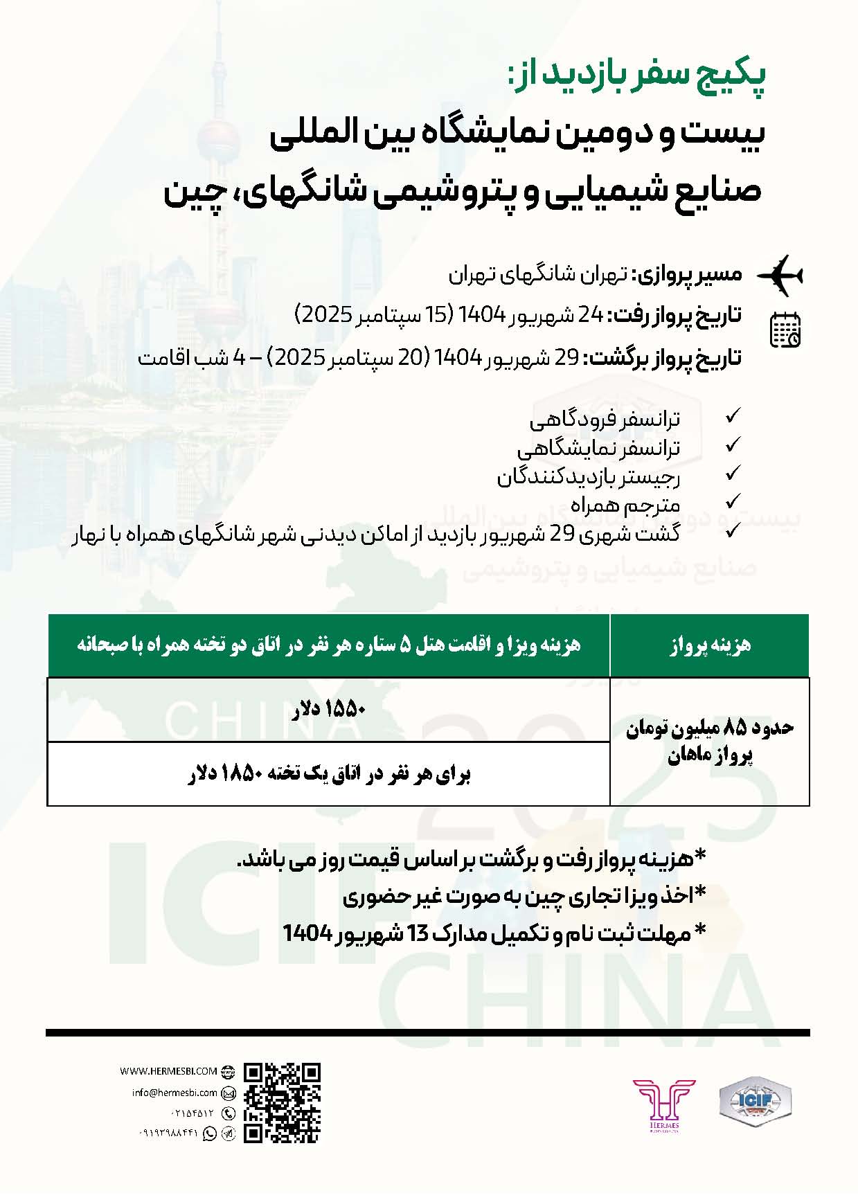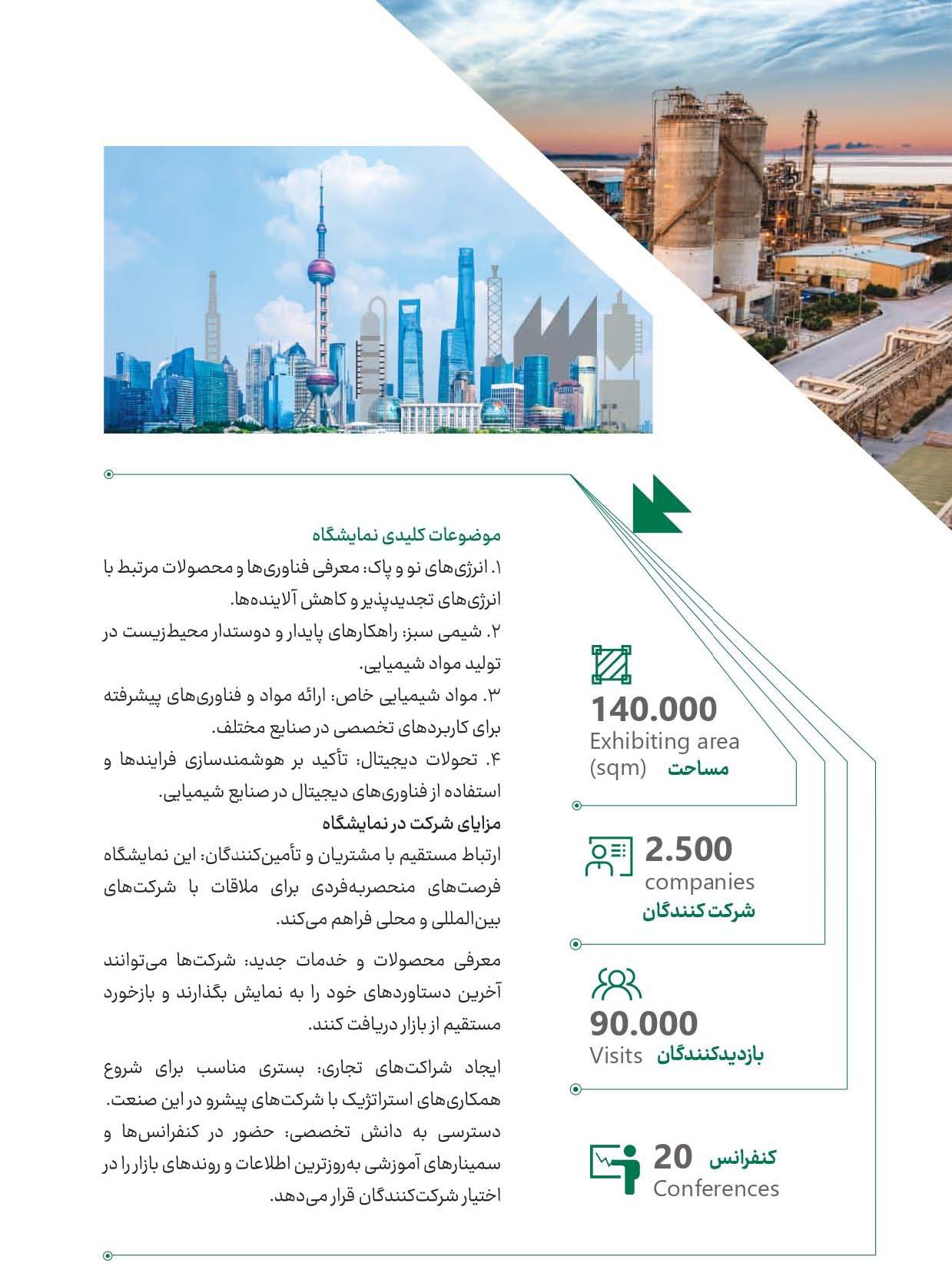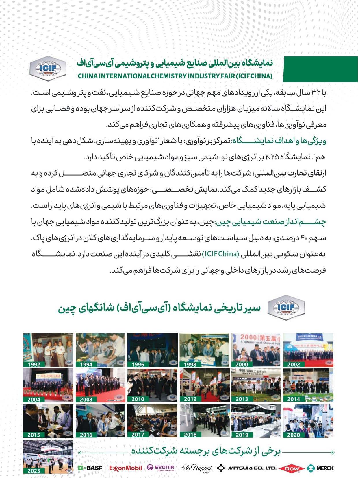 نمایشگاه مواد شیمیایی شانگهای چین که یکی از معتبرترین نمایشگاهها در سطح جهان است (26 الی 28 شهریور 1404 ) آخرین فناوریها و پیشرفتهای حوزه مواد شیمیایی را در معرض بازدید عموم قرار دهد.
