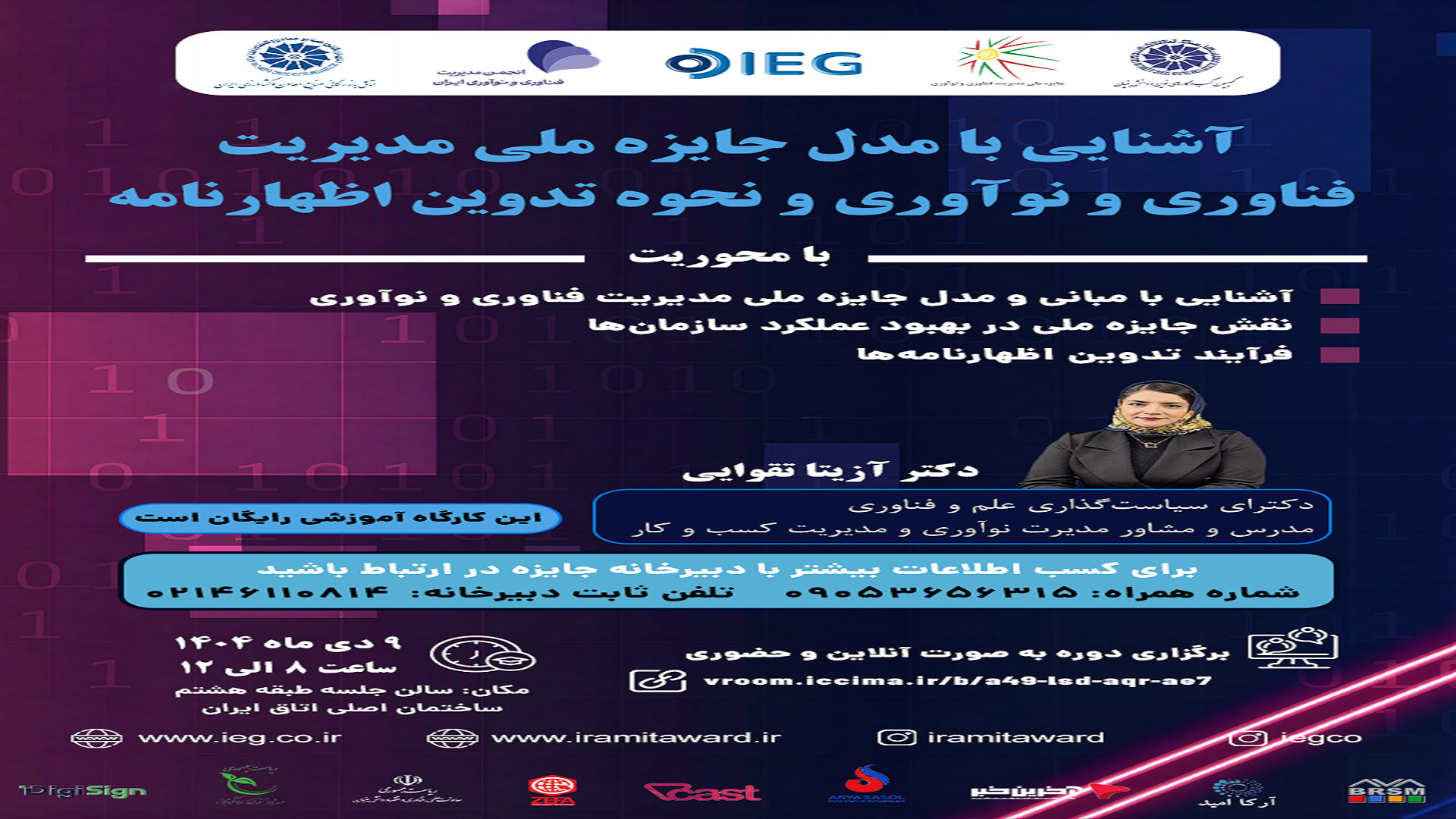 این کارگاه با محوریت “آشنایی کامل با مدل جایزه ملی فناوری و نوآوری” طراحی شده است و به شرکتکنندگان این فرصت را میدهد تا با ساختار، معیارها و الزامات این جایزه مهم ملی آشنا شوند.