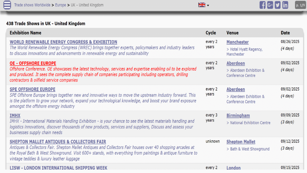 فهرست نمایشگاه های تجاری بریتانیا تا پایان 2026